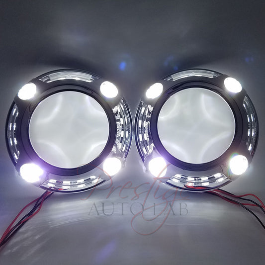 2pc Panamera 1.0 Style Shrouds Halo, with LED White DRL for 2.5" - 3" projectors