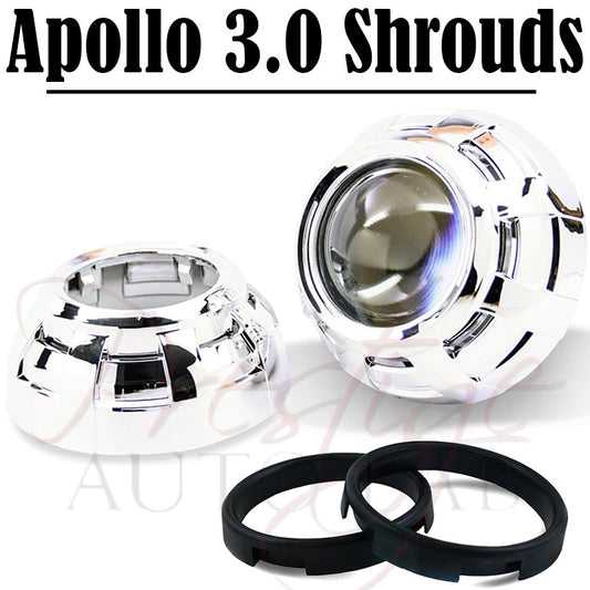 Apollo 2.0 Chrome HID Retrofit Projector Shroud W/ Centric Ring Fit 2.5" & 3"