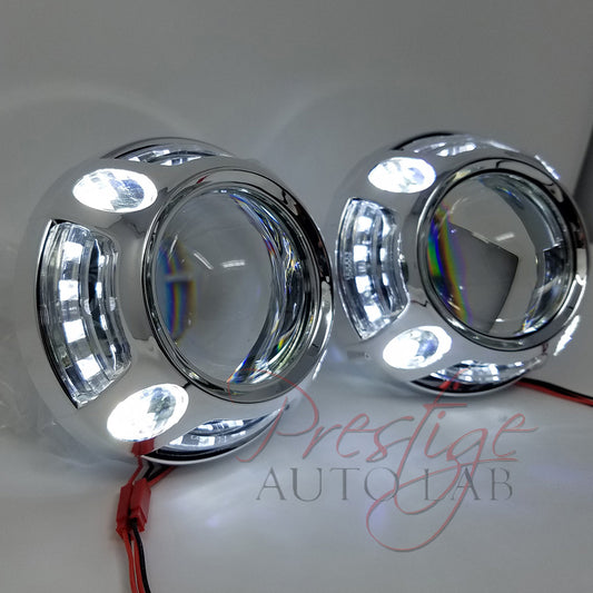 2pc Panamera 1.0 Style Shrouds Halo, with LED White DRL for 2.5" - 3" projectors