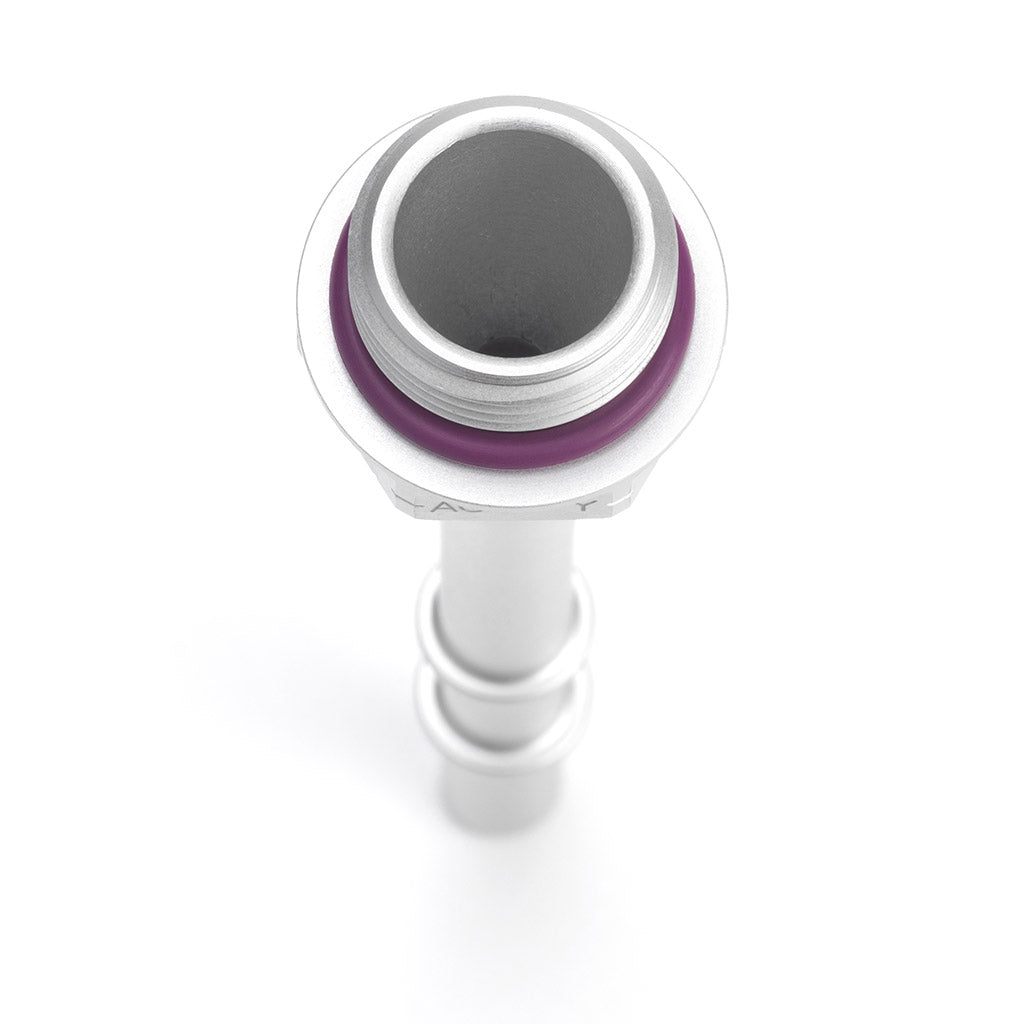 ACUiTY's 5/16" Quick-Connecto to -8 O-Ring Boss (ORB) adapter is made from 7075-T6 aluminum for strength with a gently tapered interior for maximum flow. They are particularly useful when running an aftermarket Honda K-Series compatible fuel rail with a stock fuel line. A silver anodized finish ensures high cosmetic quality and resistance to oxidation. These were designed for use with ACUiTY's K-Series Fuel Rails, but they are perfect for use in any gas, ethanol, or gas/ethanol mix fuel system where a -8 ORB port must be adapted for a 5/16" Quick-Connect style fuel line (which is a common style used on the fuel rail for many Honda K-Series vehicles except for vehicles with port injection). The fitting comes supplied with a -908 FKM o-ring that is gasoline and ethanol (and E85, etc) compatible. Additionally, each fitting is designed with a flange at the base of the 7/8" hex to help protect against scratching the part the fitting is being threaded into during tightening.Â