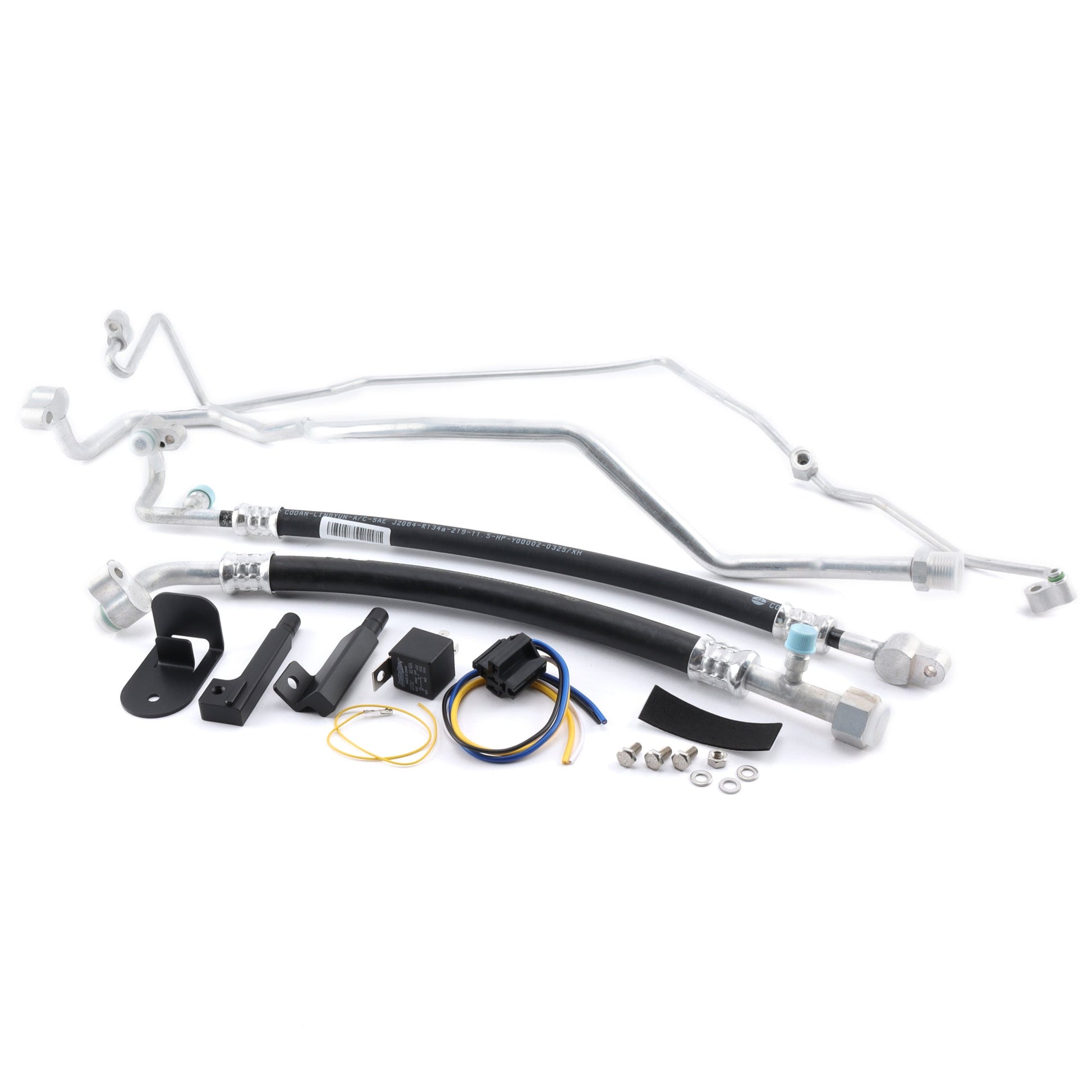 What does the kit come with?The AC kit comes with 4 custom AC lines and all necessary wiring and O-rings. Does not come with mounting brackets.