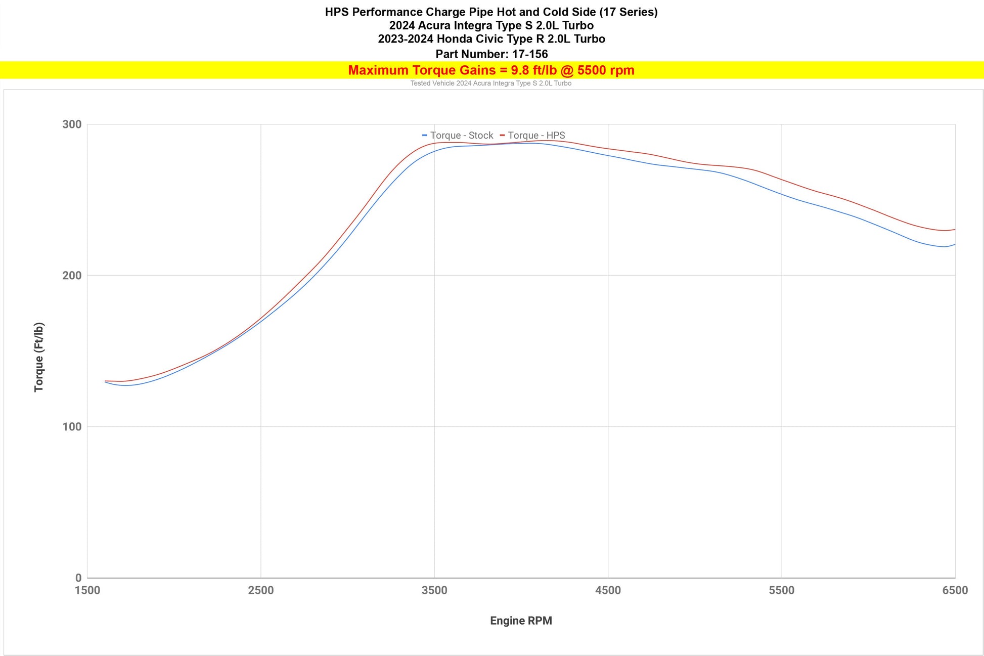 The HPS Performance Hot and Cold Side Charge Pipe Kit is the essential upgrade engineered to replace the factory charge pipe system, providing significant performance improvements for your vehicle. With a larger 2.25-inch diameter on the hot side and 2.5-inch diameter cold side pipes made from 6061 mandrel bent aluminum, the enhanced airflow and reduced restriction increases the engine output by 10.2 horsepower and 9.8 lb-ft of torque, resulting in improved throttle response, acceleration, and overall engine performance. The HPS Performance Charge Pipe Kit is made with reliability in mind. This kit utilizes 4-ply high temperature and oil resistant silicone couplers and stainless steel clamps to deliver dependable performance under the most demanding driving conditions. The charge pipe features a 1/8" NPT port on the lower cold-side pipe to facilitate the installation of additional sensors, injectors, or solenoids. In addition to the enhanced performance, the HPS Performance Charge Pipe Kit also offers improved reliability. The included 4-ply reinforced oil resistant silicone couplers and embossed stainless steel hose clamps ensure a secure and leak-free connection. These couplers are designed to handle high boost pressures, resist degradation from oil, and provide excellent heat resistance while the stainless steel hose clamps offer a tight fit that prevents slipping or loosening. This kit is designed to be a direct bolt-on replacement, making installation straightforward and hassle-free. All the necessary hardware and components are included, ensuring a proper and secure fit. With its larger diameter charge pipes, durable construction, and included oil resistant silicone couplers and stainless steel hose clamps, this kit offers improved throttle response, increased horsepower, and a more exhilarating drive with the HPS Performance Charge Pipe Kit installed in your vehicle.