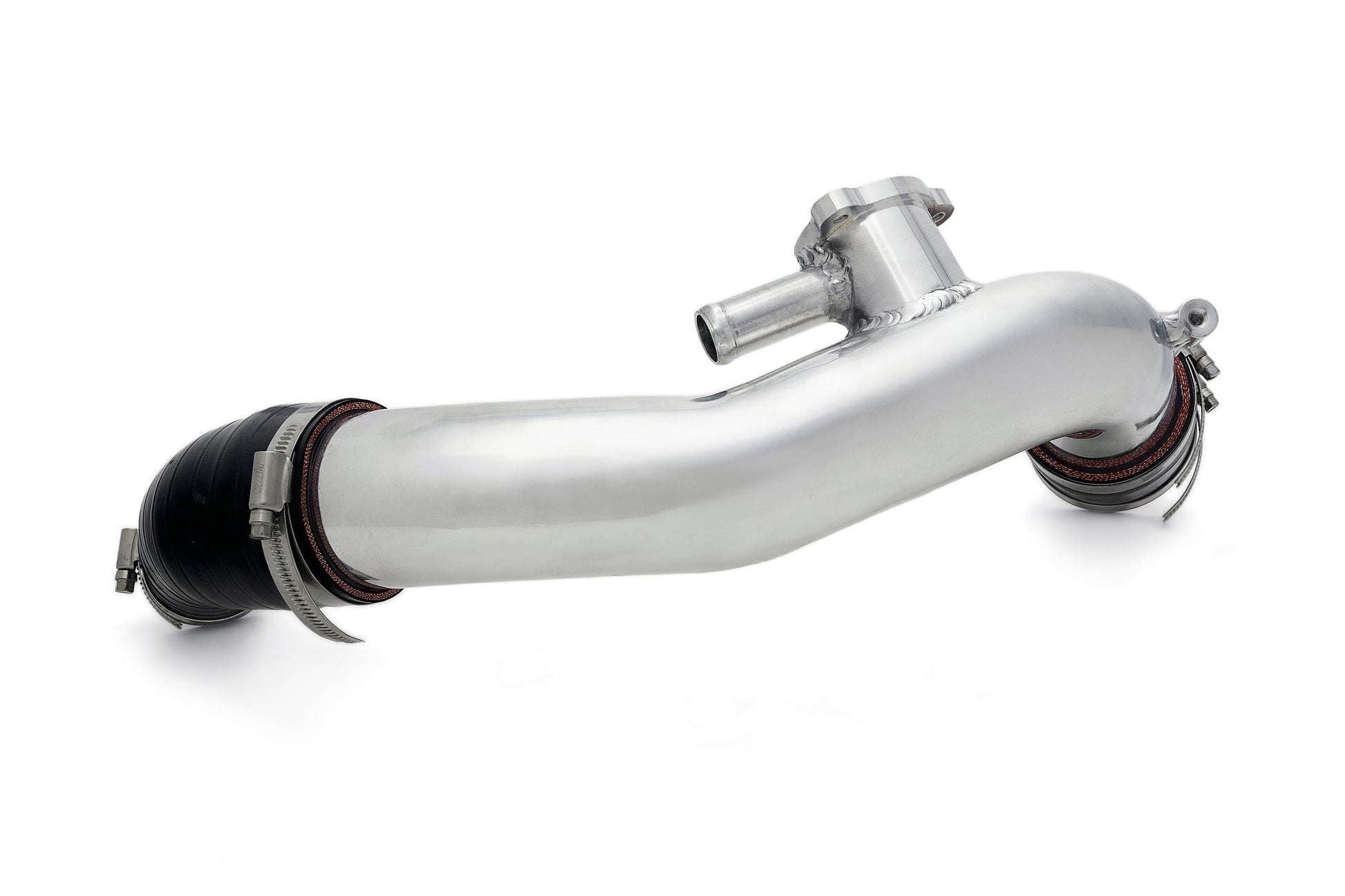 Replaces and upgrades your plastic stock hot side charge pipes with durable aluminum tubing.