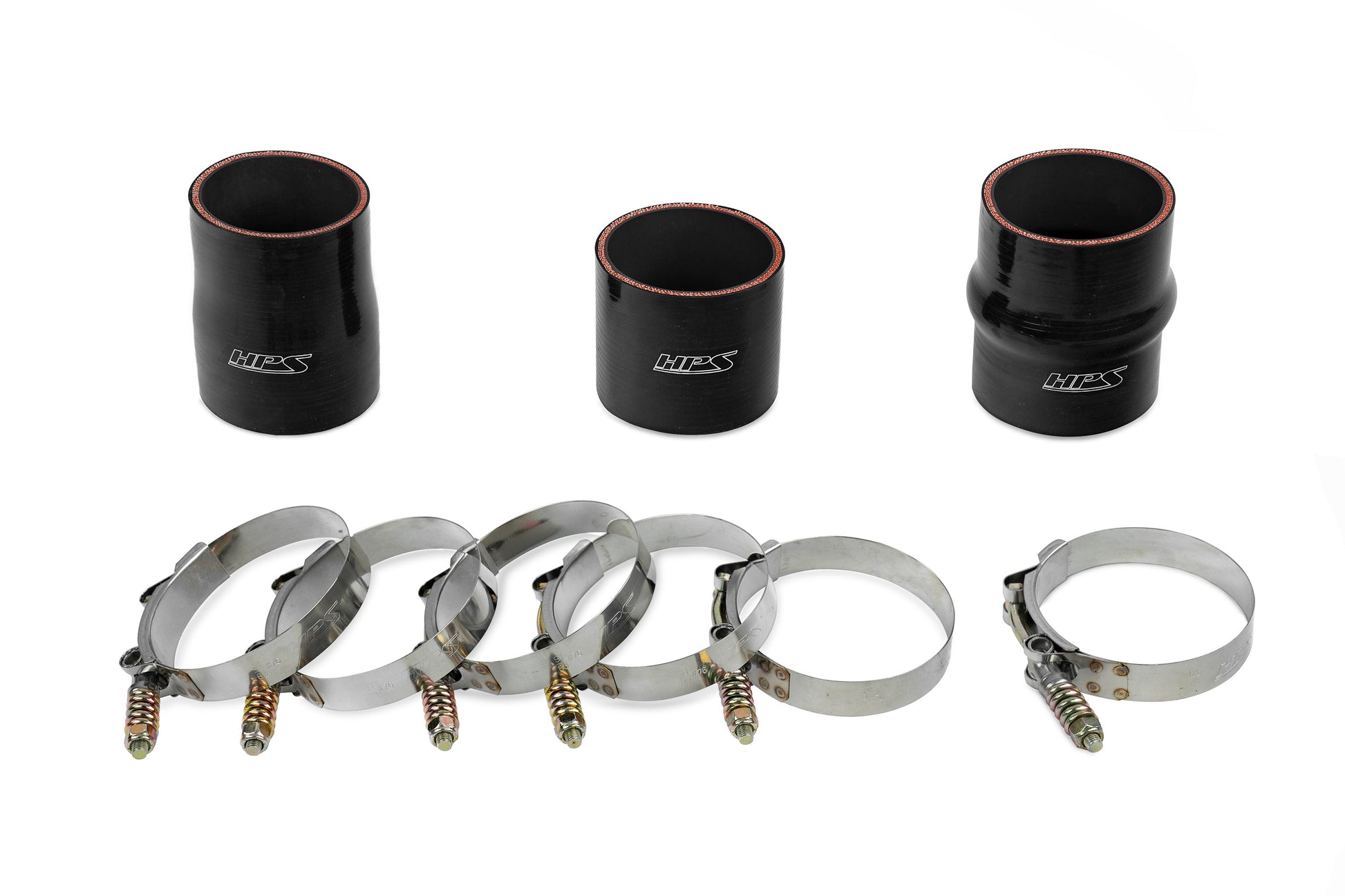 Includes HPS oil resistant 4-ply reinforced silicone couplers and heavy duty stainless steel spring loaded T-bolt clamps.