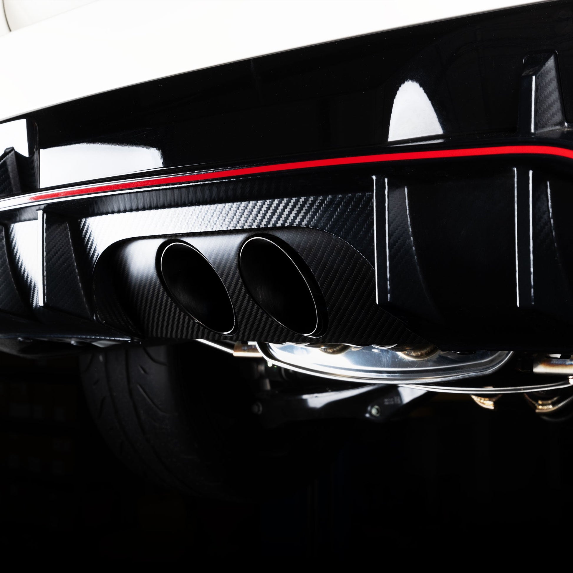 This upgrade doesn't stop at the valence. Our exhaust system offers many exhaust tip options, allowing enthusiasts the liberty to customize their car's look. Drawing inspiration from the aerodynamic efficiency of blown diffusers seen in racing, we've innovated flush exhaust tips that seamlessly integrate into the rear, enhancing the car's overall aesthetics. These flush tips, available in black, exude a sporty allure, contributing to a clean and aggressive appearance.