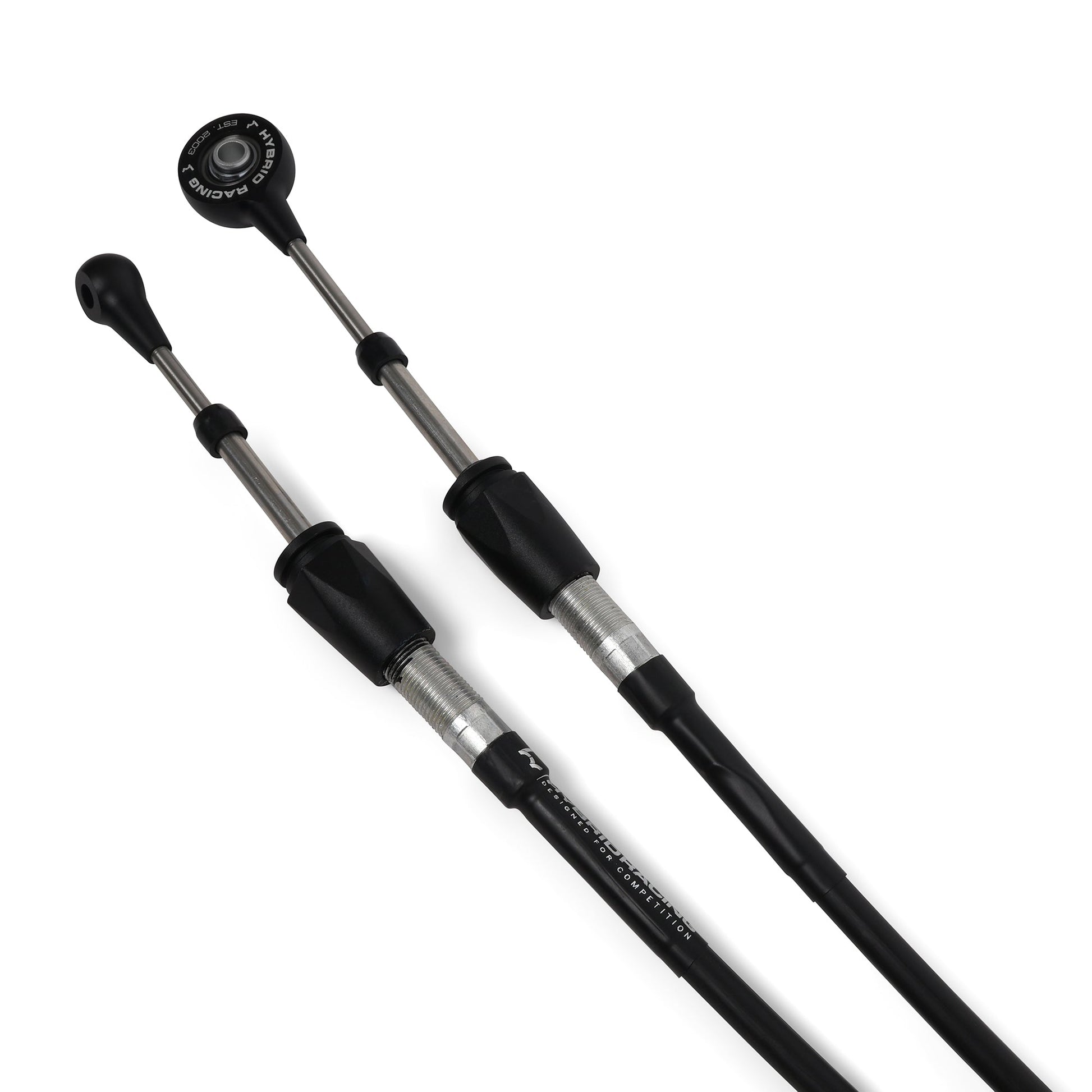 Hybrid Racing shifter cables are a performance upgrade replacement for stock OEM cables. The solid rod ends, permanently lubricated core, spherical bearings, and aluminum end links give the Hybrid Racing cables a firmer, tighter feel over OEM cables, resulting in fewer missed shifts and a more connected feel to the chassis. The cable is heat resistant up to 225*F and has a max bend radius of 5" (for optimum life). We created a cable that is stronger and improves driving and shifting performance.