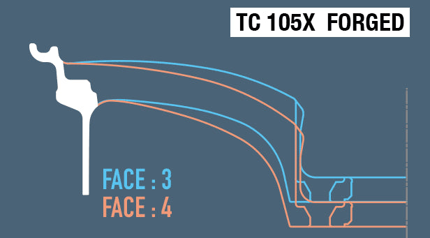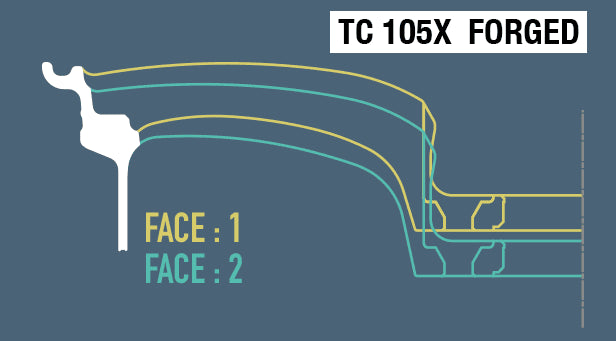 The TC-105X Forged carries the same, 10-spoke design first seen on the TC-105N and later on the TC-105X AMF. Visually, both wheels are near-identical, with the exception of a "Forged" etching to replace the AMF casting on the wheel's face. The main visual difference is the flattened spoke surface of the TC-105X Forged which makes the wheel visually similar to the TC-105N. The new spoke shape is a byproduct of the closed-die forging process. The TC-105X Forged shares the same race-winning feature set as the AMF version, such as ball-mill cutting, N-Frame II, EJ-TI paint and more.